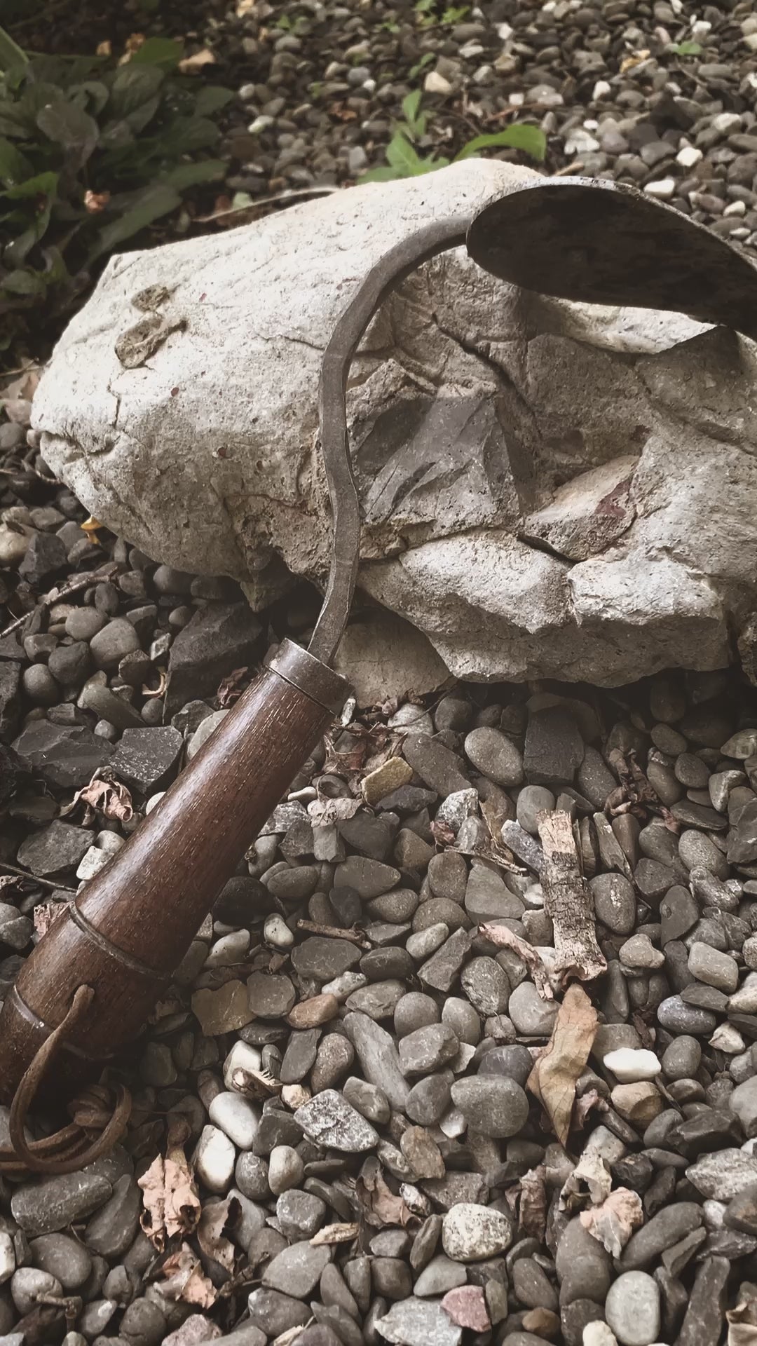 These handsome garden tools are hand forged by artisan Tuli Fischer in Montana. Abrasive resistant steel comprises the working body while the handles are turned from black walnut, finished with marine spar varnish. Each tool is built individually using traditional blacksmithing techniques; the joinery consists of solid steel rivets and every tool is set into its own hand turned handle creating a long-lasting garden tool with no welds.